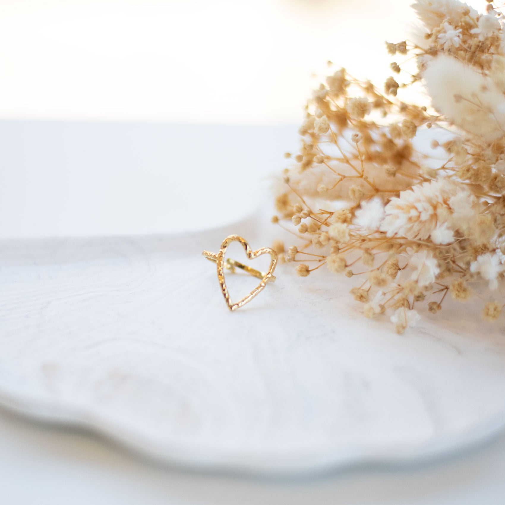 Le cœur délicatement intégré au design symbolise l’amour et la tendresse, faisant de cette bague un bijou plein de sens. Polyvalente, elle se porte aussi bien au quotidien que lors d’occasions spéciales et s’associe parfaitement à d’autres accessoires dorés.
