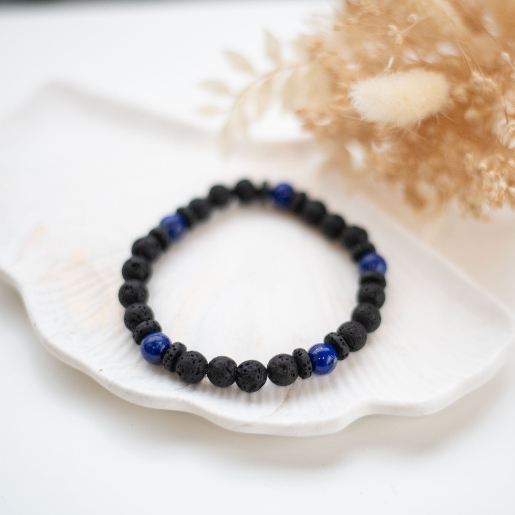 Pierres naturelles : Pierre de lave & Lapis Lazuli (8 mm)