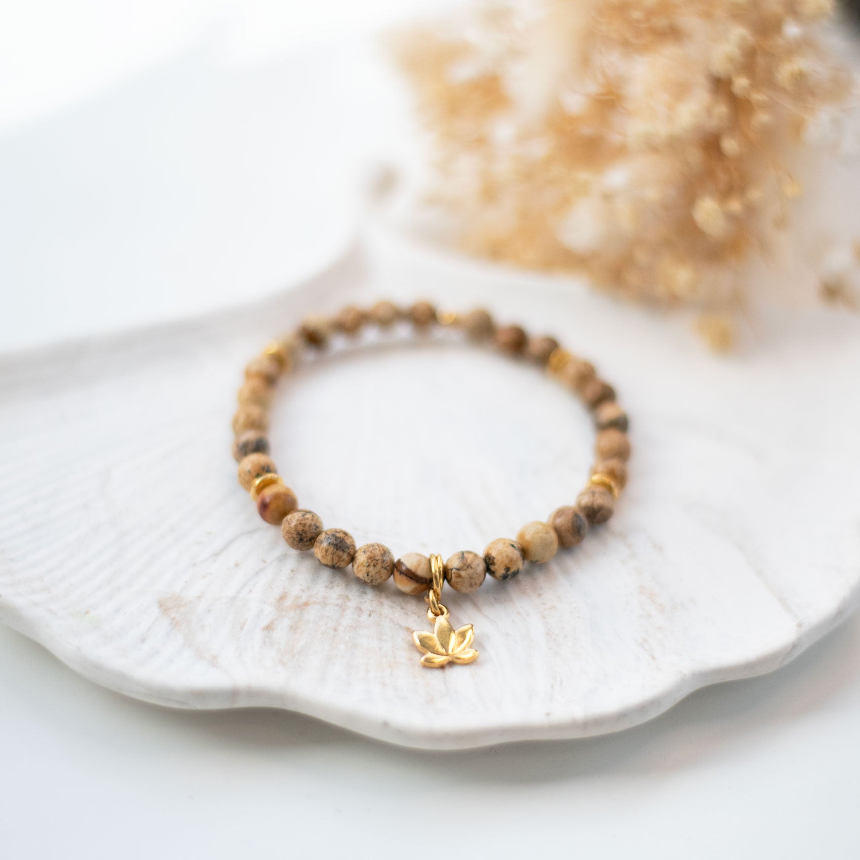 Le jaspe paysage, aussi appelé « pierre de vision », est apprécié en lithothérapie pour favoriser la créativité, la patience et la méditation. Il aide à surmonter les peurs, à apporter stabilité émotionnelle et à se recentrer sur l’essentiel. Portez ce bracelet pour bénéficier de ses vibrations positives et sublimer votre style avec élégance.