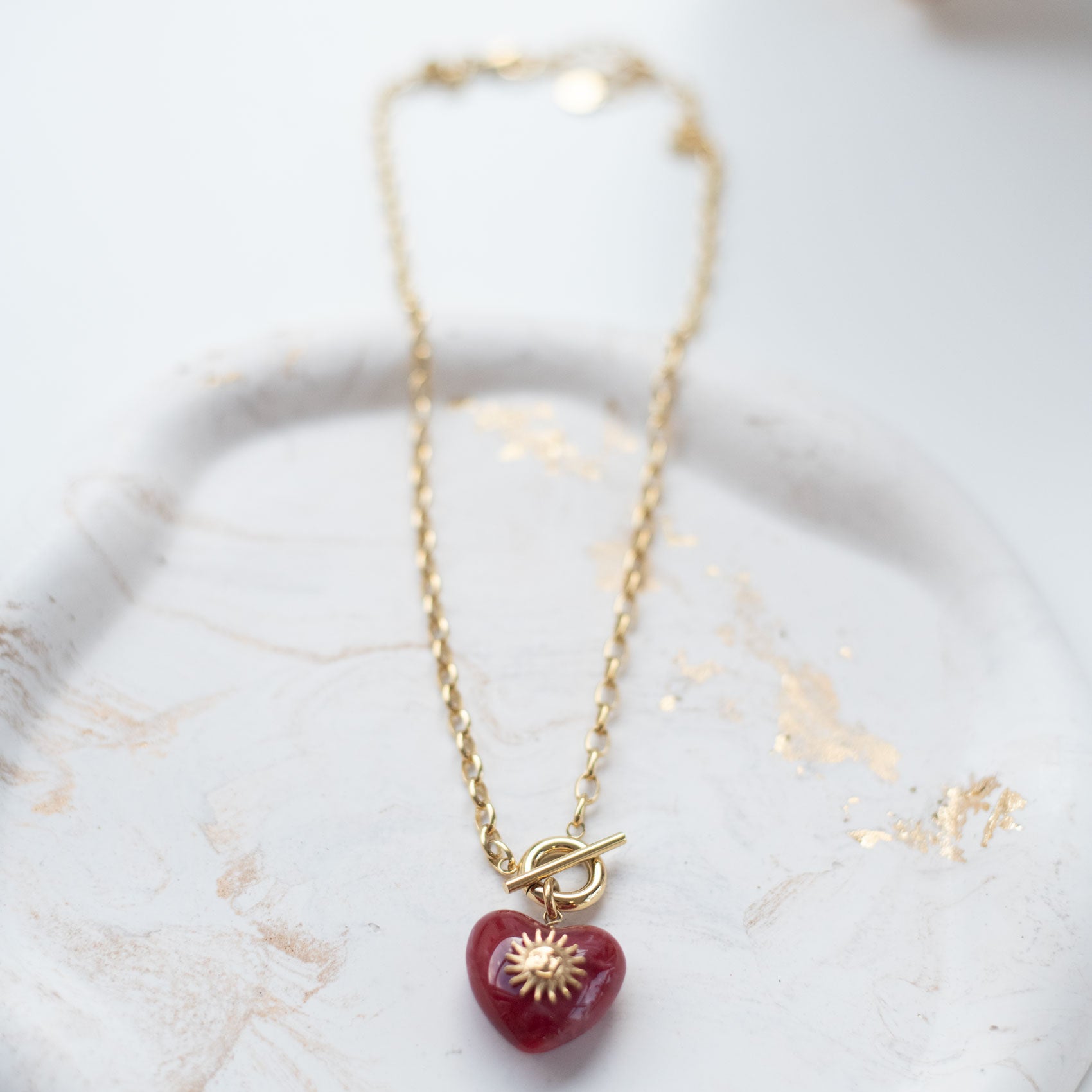 Collier cœur rouge en acier inoxydable doré – Bijou élégant et symbolique